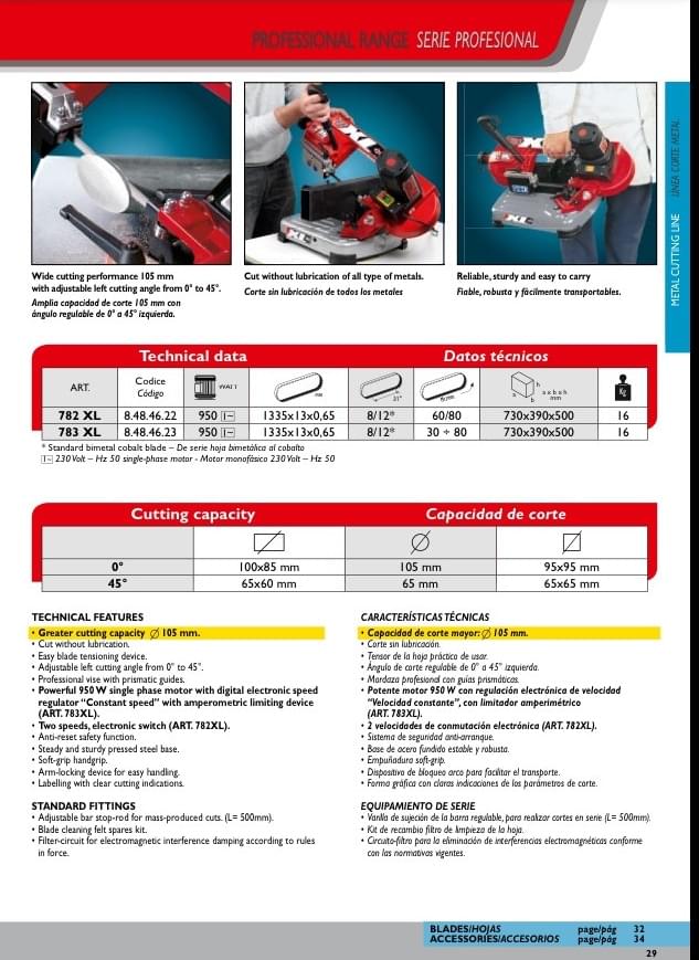 Catalog và thông số máy cưa vòng Femi 782 XL: